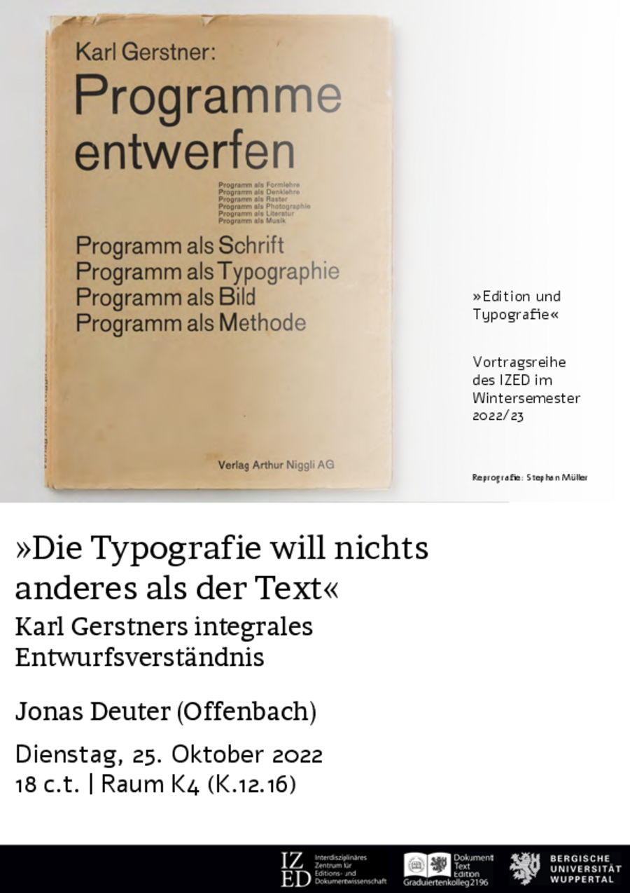 25. Oktober 2022 – Vortrag: »Die Typografie will nichts anderes als der Text«
